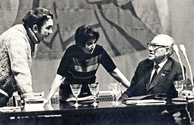 З.М. Ибрагимова и её коллега разговаривают с М.А. Лаврентьевым.