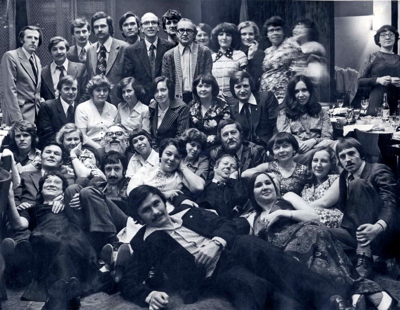 Все... (37) | Сотрудники отдела программирования ВЦ СО АН СССР на банкете после семинара "Перспективы развития системного и теоретического программирования". В верхнем ряду слева направ6: Г.Г. Степанов, Я.М. Курляндчик, А.В. Быстров, С.Б. Покровский, В.В. Грушецкий, М.Б. Трахтенброт, Д.Я. Левин,В.И. Форонов, Н.А. Калинина, Л.К. Грушецкая, Е.Л. Першина, Г.П. Несговорова. В стороне стоит Т.С. Васючкова.