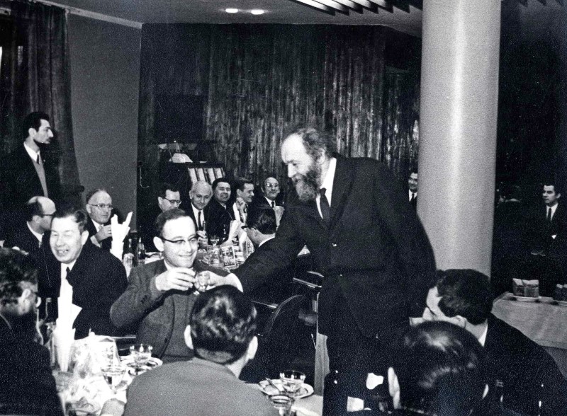 Все... (9) | Банкет по случаю закрытия Второй всесоюзной конференции по программированию (ВКП-2). На первом плане стоит А.А. Ляпунов. Слева сидит А.Ф. Рар. Стоит Т.Г. Голенпольский, от него вправо сидят: А. Ван Вейнгаарден, А.П. Ершов, Дж. Кок, Г.И. Марчук. |