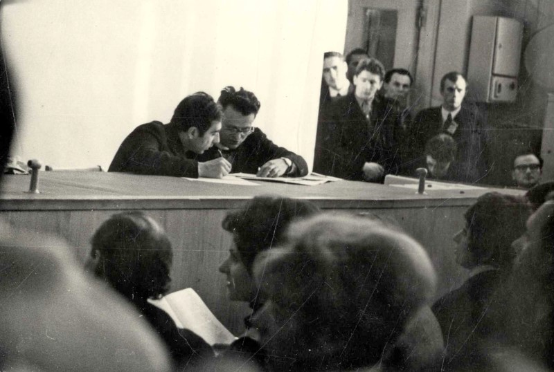 В одной из аудиторий НГУ. Застолом справа сидит С.Т. Беляев.
