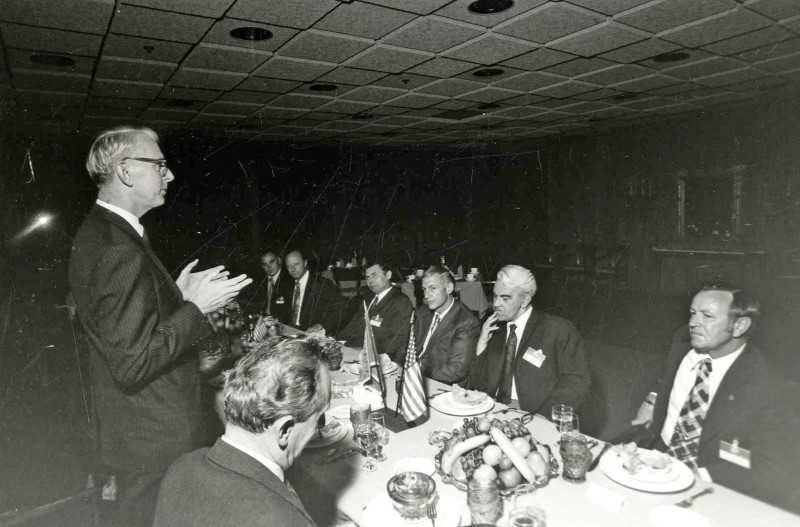 М.В. Келдыш (второй справа) и Г.И. Марчук (четвёртый справа) на дружеском ужине во время визита в США.