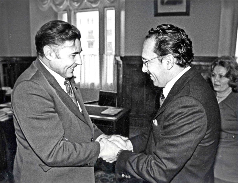 Визит в Москву делегации Кубы во главе с Президентом Кубинской АН Торресом Ирибаром Вильфредо. Г.И. Марчук приветствует его в своём кабинете.