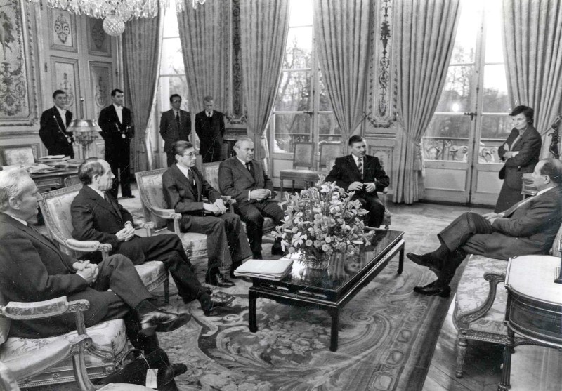 Г.И. Марчук на приёме у Президента Франции Франсуа Миттерана в Елисейском дворце в Париже. Президент Франции Ф. Миттеран наградил Г.И. Марчука орденом Командора Почётного легиона.