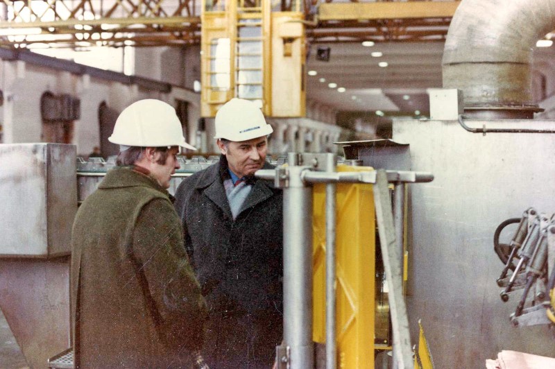 На одном из предприятий Финляндии. Г.И. Марчук - справа.