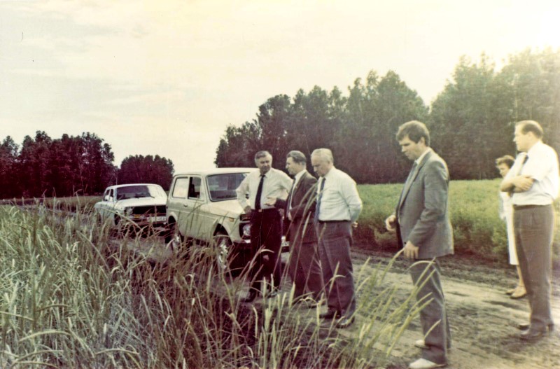 На опытном поле Сиб. НИИ растениеводства. Слева - Г.И. Марчук, в центре - А.П. Филатов.