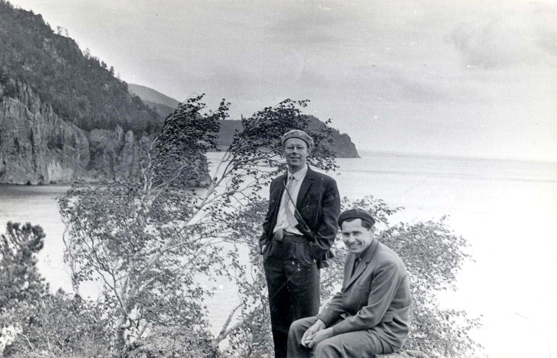 Г.И. Марчук (сидит) и О.Ф. Васильев на Байкале.