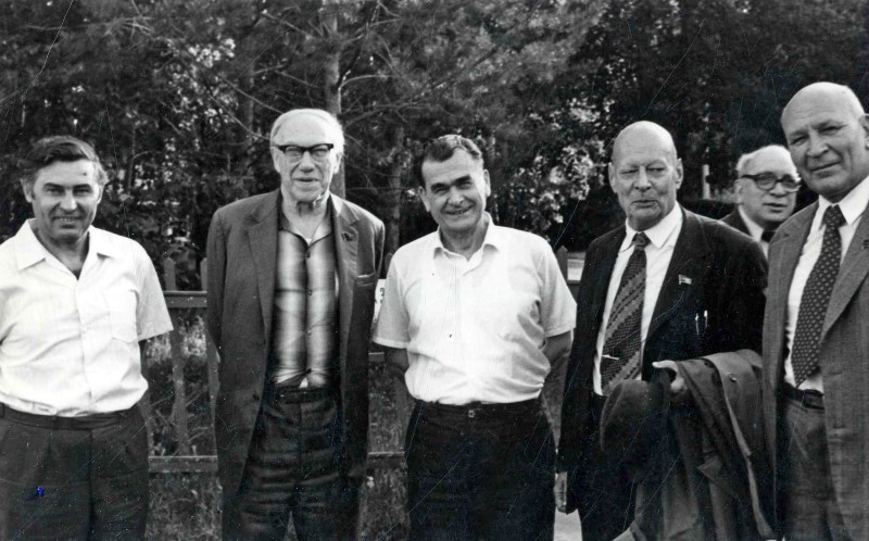 Визит Президента АН СССР А.П. Александрова в Академгородок на празднование 20-летия СО АН СССР. Слева направо: Г.И. Марчук, М.А. Лаврентьев, Д.К. Беляев, А.П. Александров, А.В. Сидоренко.