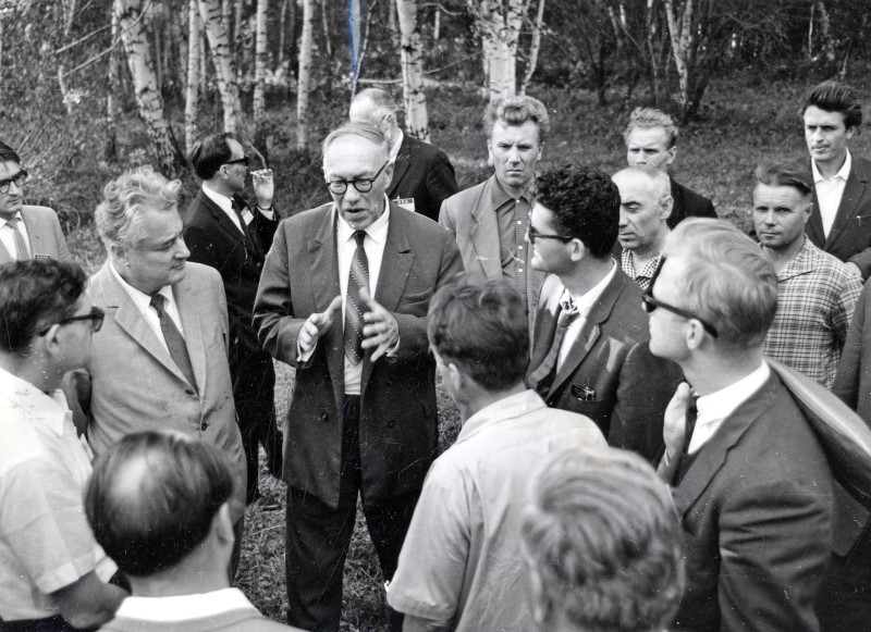 М.А. Лаврентьев и И.Н. Векуа с участниками советско-американского симпозиума по дифференциальным уравнениям с частными производными.
