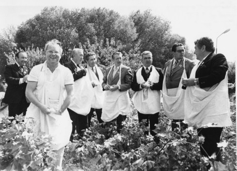 А.П. Ершов (слева), участники международного Ургенчского симпозиума, руководители республиканских партийных и советских органов собирают хлопок.