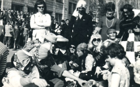 Участники карнавала. В цнтре в белом костюме - М. Лычагин.