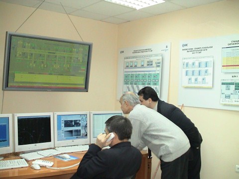 Решение проблем стыковки АСУТП Северомуйского тоннеля с аппаратурой управления движением Восточно-Сибирской железной дороги (ВСЖД). Слева направо: Г.С. Березовский, Б.Н. Пищик, Д.А. Кирпичев.