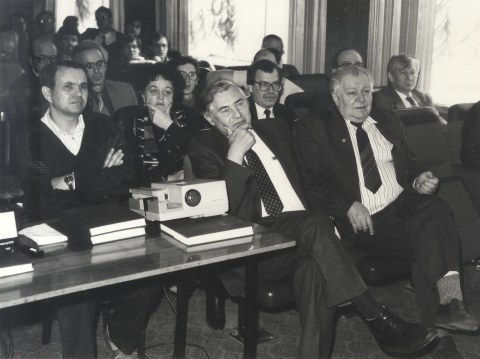 На семинаре ВЦ СО АН СССР. Слева направо в 1-м ряду: Г.И. Марчук, А.С. Алексеев; во 2-м ряду: Ю.И. Шокин, Г.А. Михайлов; в 3-м ряду: Г.С. Ривин.