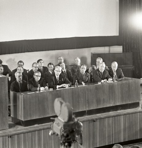 1976, Новосибирск Слева направо: Л.А. Овсянников (1-й), В.А. Коптюг (2-й), Г.А. Ванаг (3-й), А.В. Николаев (5-й), С.С. Кутателадзе (6-й). Автор: Ахмеров Рашид Ибрагимович Архив: Фотоархив СО РАН, Источник: Архив Р.И. Ахмерова (негативы) | ||||||||||||