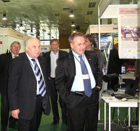 2010, Новосибирск Сибирская ярмарка «Сиббезопасность. Спассиб.2010» Директор Института горного дела СО РАН член-корр. РАН В.Н. Опарин в присутствии сотрудников к.т.н. В.Д. Барышникова и В.М. Овчинникова представляет экспозицию ИГД СО РАН на Сибирской ярмарке президенту Академии горных наук РФ член-корр. РАН Ю.Н. Малышеву. Архив: Фотоархив СО РАН, Источник: Юбилей В.Н. Опарина | ||||||||||||
