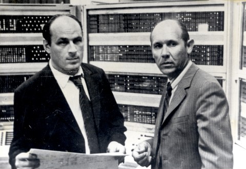 В.П. Кузнецов (слева) и И.М. Бобко у пульта БЭСМ-6.