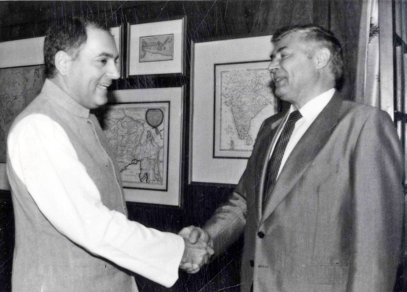 Г.И. Марчук (справа) на приёме у премьер-министра Индии Р. Ганди