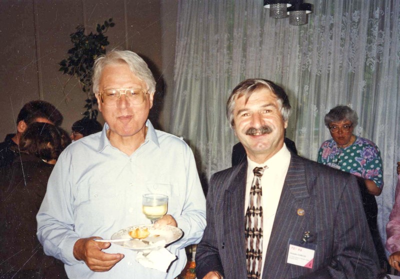На прощальном банкете Международной конференции "Перспективы систем информатики". П. Сёрен (слева) и А.В. Замулин.