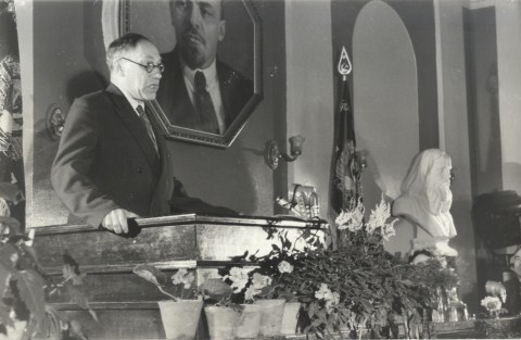 Первое Общее собрание Сибирского отделения АН СССР. Выступает академик М.А. Лаврентьев. Заседание проходило в здании бывшего Западно-Сибирского филиала АН СССР.