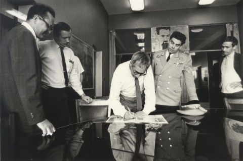Визит космонавтов Г.С. Титова, К.П. Феоктистова и астронавта Ф. Бормана