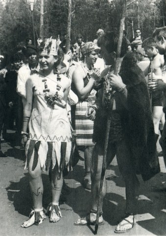 Участники карнавала. В центре в костюме цыганки - А.Черевикин. (Фото из коллекции С. В. Бредихина).