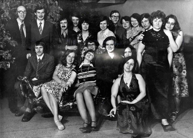 Все... (19) | Сотрудники отдела программирования ВЦ СО АН СССР на банкете после семинара "Перспективы развития системного и теоретического программирования". В верхнем ряду слева направо: М.Б. Трахтенброт, А.В. Быстров, А.С. Нариньяни, В. Медведев, Н.А. Черемных, О.Н. Очаковская, В.Е. Котов, Р.Д. Мишкович, Н.А. Калинина, В.К. Сабельфельд, Р.Н. Клюшкова, Л.И. Котова. Во втором ряду: -, Е.Ю. Кандрашина, И.С. Кононенко, Г.П. Несговорова, Е.Л. Першина, Ф.Г. Диненберг, Т.С. Янчук. |