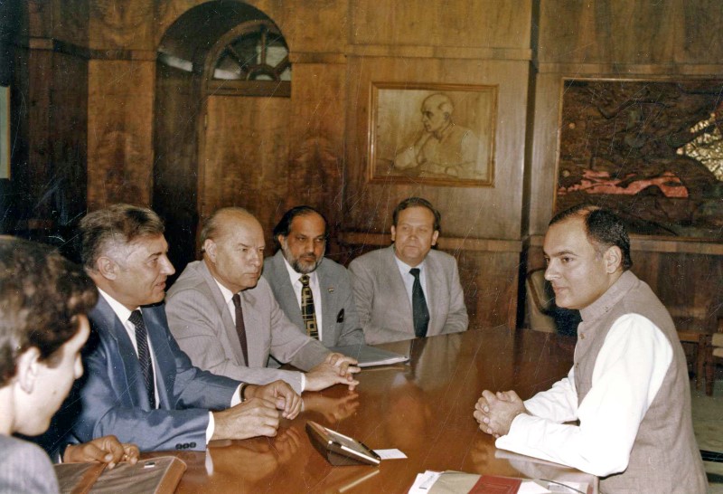 Г.И. Марчук (слева) с коллегами на приёме у премьер-министра Индии Р. Ганди