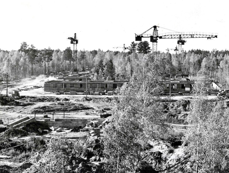 Строительство Академгородка. Слева - Морской проспект на пересечении с бульваром Ильича.