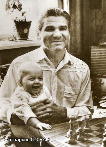 Раздел экспозиции "С домашними". Д.ф.-м.н. А.В. Сычев (ИМ) с внуком Толей.