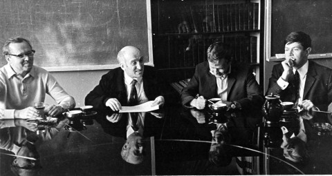 Слева направо: В.А. Сидоров, Г.И. Будкер, А.Н. Скринский, Д.Д. Рютов.