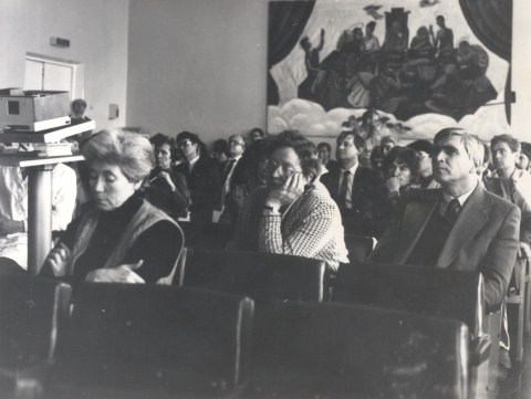 Слева направо: Л.С. Кобрина, В.Ф. Седова, -, Г.Г. Фурин, О.А. Загуляева, В.М. Карпов, М.И. Подгорная, О.П. Шкурко.