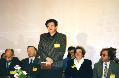 Открытие электронного читального зала в Новосибирской государтвенной областной научной библиотеке. Выступает Е.Ю. Гениева. Cидят слева направо: В.И. Бахмин, И. Гомеров, Н.А. Бредихина и С.Л. Мушер.