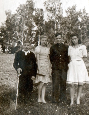 Андрей Ерщов (второй справа) с одноклассниками. Слева от Андрея - Ирина Тарасова (Киселёва). Фото из архива И.А. Киселёвой.