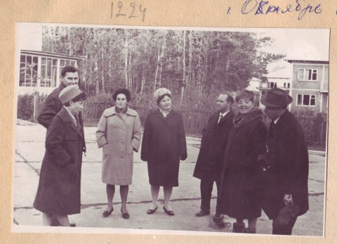 Приезд в Академгородок американского математика Е. Минца с супругой. Слева направо: -, Г.И. Марчук, Р.Ф. Курбаткина, О.Н. Марчук, Л.Н. Гутман.